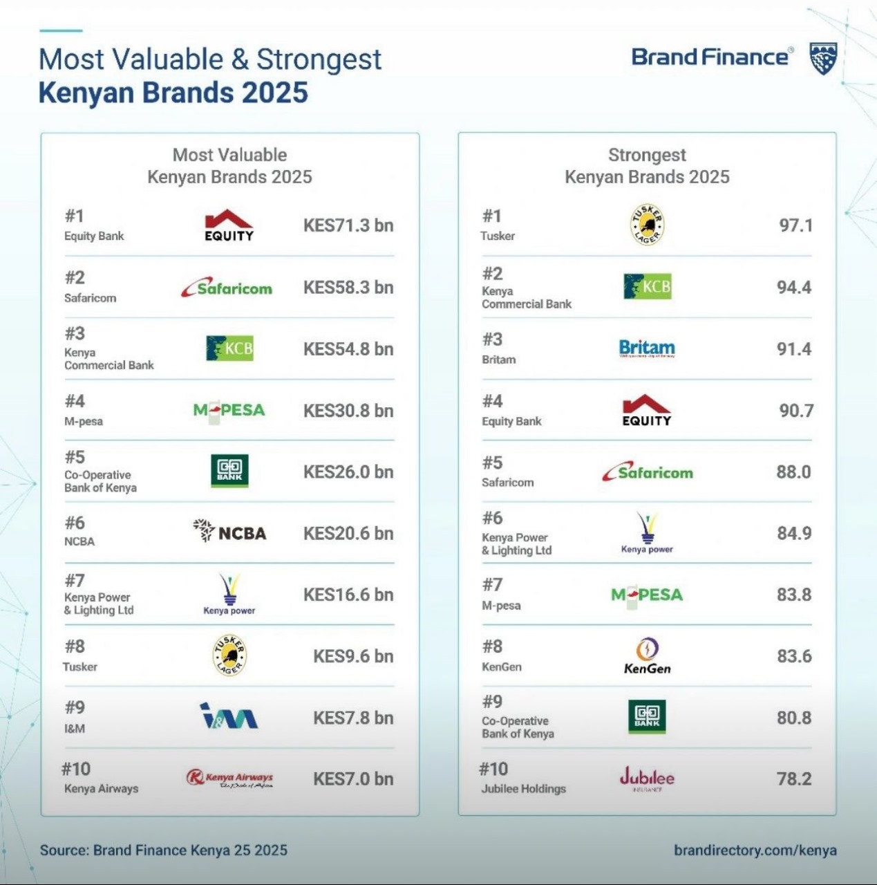 The top 10 most valuable Kenyan brands have all experienced notable brand value growth in 2025, highlighting their resilience and momentum amid improving economic conditions.