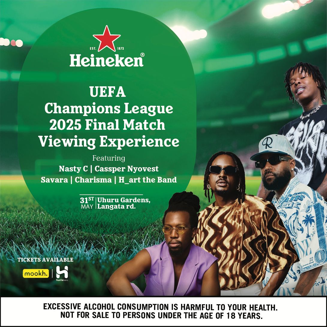 For the ‘hard core fans’ of the UEFA Champions League above 18 years of age, Heineken is crafting an unforgettable finale experience. This high-energy celebration will feature electrifying performances by South African superstars Cassper Nyovest and Nasty C, alongside Kenyan acclaimed artists, Savara, Charisma, and H Art the Band. The soundtrack to the night will be a non-stop mix of beats from DJs DJ IV, DJ Suraj, Foozak, Premium DJ Ruffy, Vidza, Kuzi, Wal, and Will the DJ, all guided by the charismatic MC Azeeza.