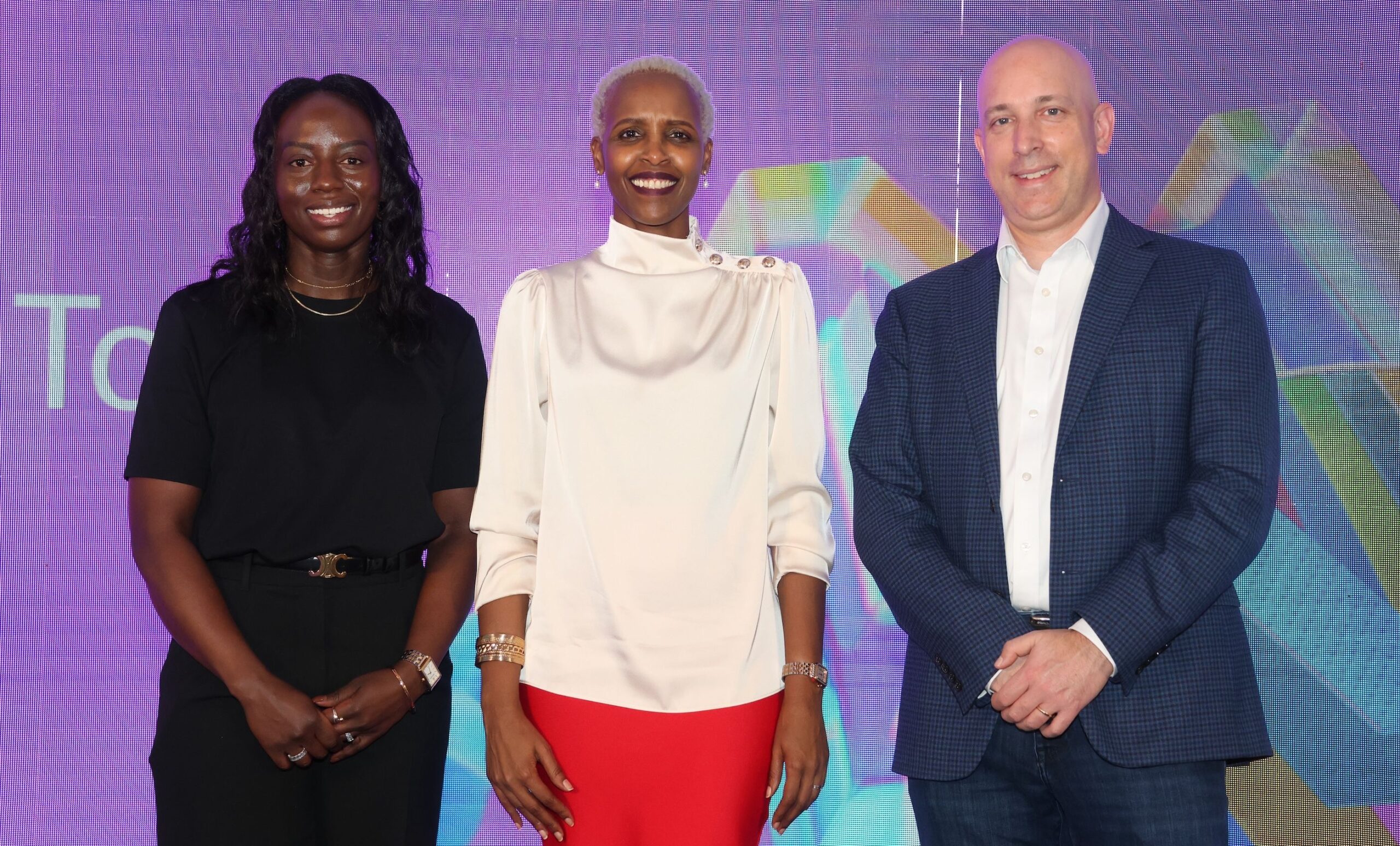L-R, Beverly Kodhek, Program Manager at AI Core, Phyllis Migwi, General Manager at Microsoft Kenya, and Marco Casalaina, Vice President of Products at Core AI and AI Futuristic, share a light moment during the AI conference
