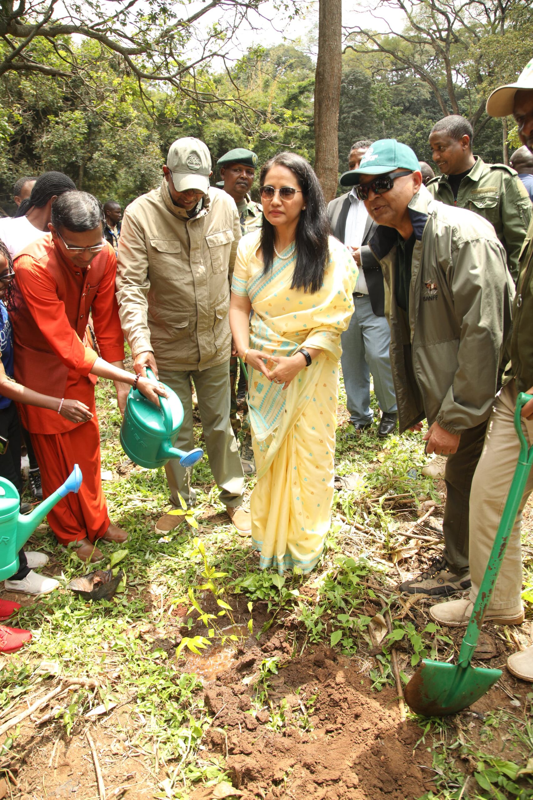 High Commissioner of India to Kenya Ms Namgya Khampa planting tree at Nairobi City Park during celebration of India 78th independence day with Environment CS Aden Duale